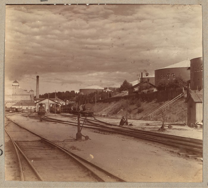 [1910]. Волга. Копаево. Цистерны и мельница Голунова. [p] Фотография вошла в альбом «Российская Империя в цвете, 1909-1915, Владимирская и Ярославская губернии».