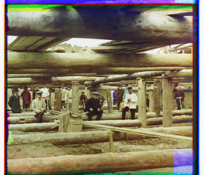 1912. Село Белоомут на реке Оке. Бетонировка флютбета плотины.