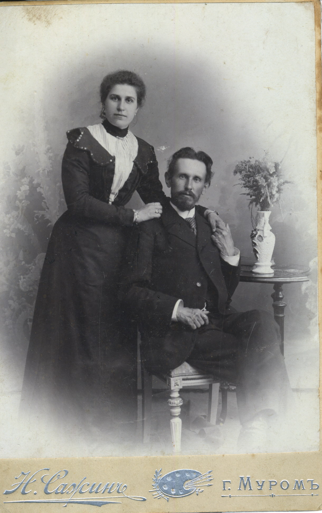 Фотоателье Н. Сажина в Муроме. Портрет художника Петра Ивановича Целебровского с женой Марией Семеновной (урожденной Ершовой). 1901.