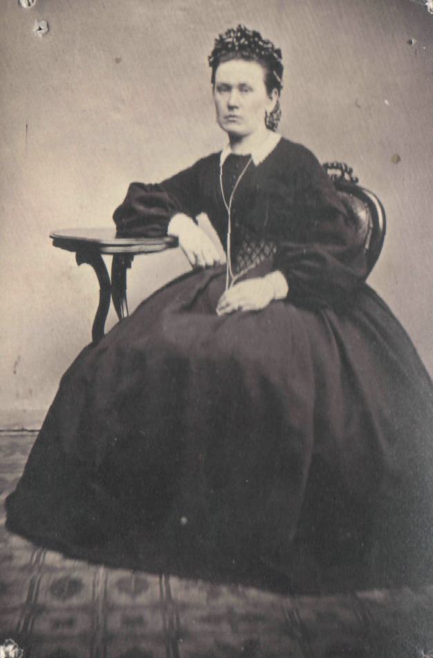 Неизвестный фотограф. Портрет женщины в темном платье на кринолине. 1860-е гг.