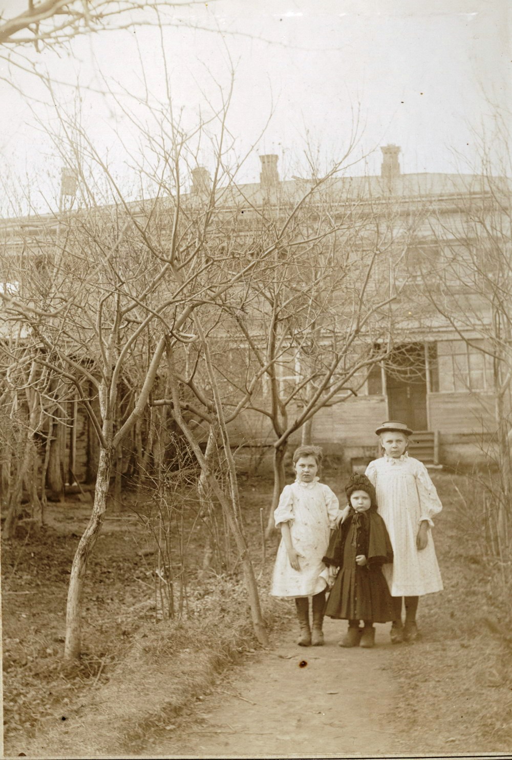 Мяздриков И.П. (1854-1931 гг.). Дети Мяздриковых во дворе дома. Муром, сер. 1890-х гг. 16,5х11,5
