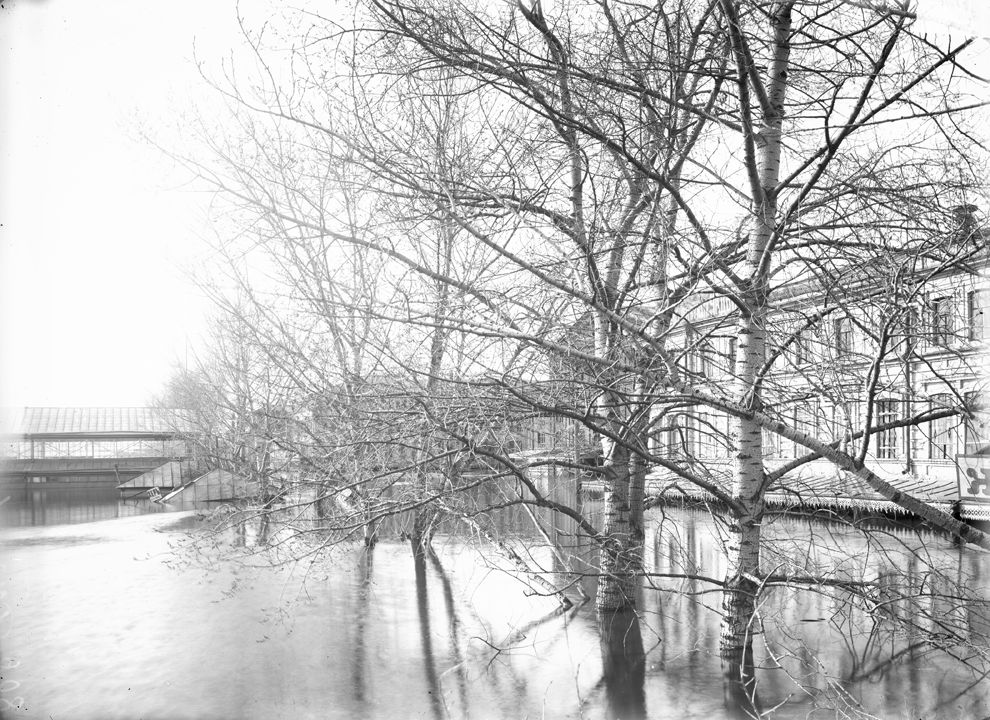 Нижегородская ярмарка во время половодья. Вид на Театральную площадь. Нижний Новгород.