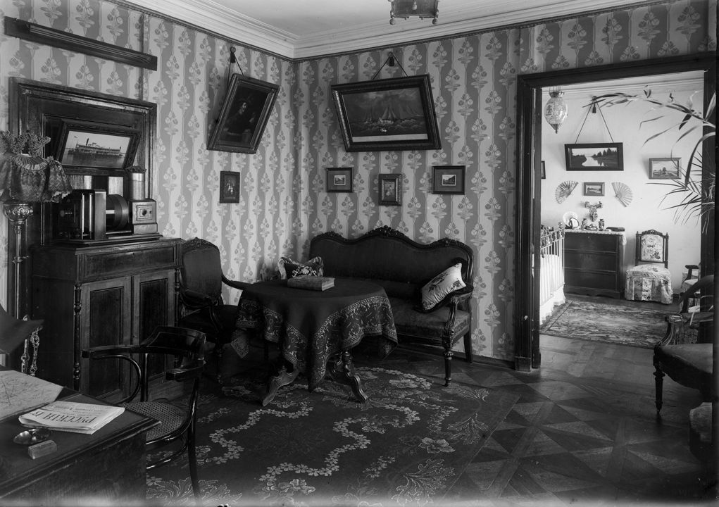 Интерьер гостиной комнаты в доме семьи Зевеке. Автор: В.А. Зевеке Место события: г. Н.Новгород Дата: нач. ХХ в.