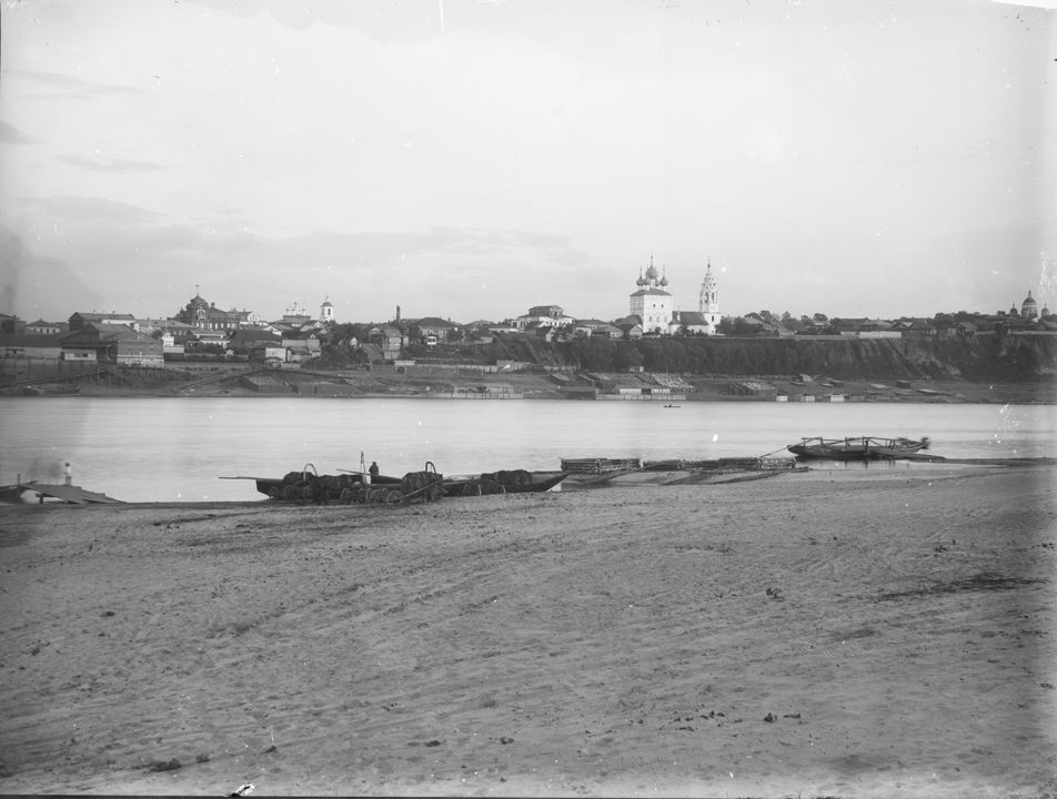 Общий вид села Павлово из-за реки Оки. Дата: 1891-1982 гг.Автор: М.П. Дмитриев Место съемки: с. Павлово, Горбатовский уезд