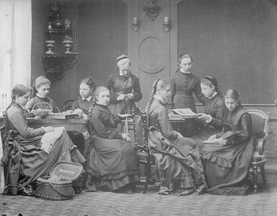 Выпускная группа 1-ой женской гимназии (слева сидит Пелагея Васильевна Дзержинская). Автор: А.О. Карелин Место события: г. Н.Новгород Дата: к. ХIХ в.