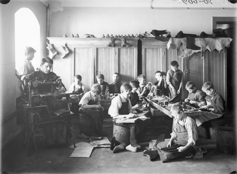 Учебная сапожная мастерская в школе имени Александра III. Нижний Новгород.