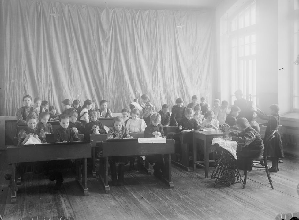 Школа имени Александра III. Внутренний вид учебного класса. Урок рукоделия. Нижний Новгород.