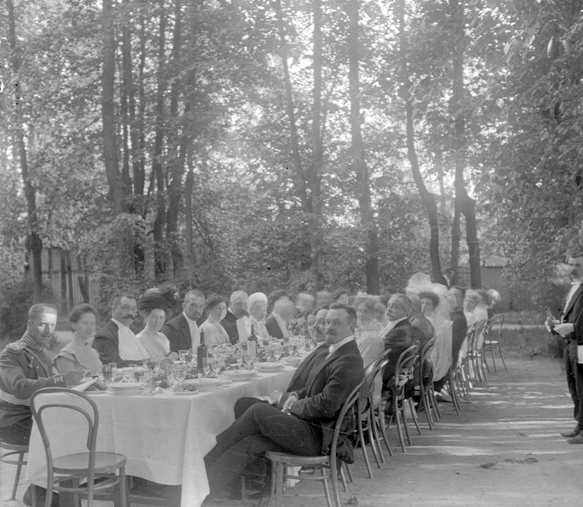 Группа людей за праздничным столом на природе. Автор: А.А. Зевеке Место события: г. Н.Новгород Дата: к. XIX - нач. ХХ вв.