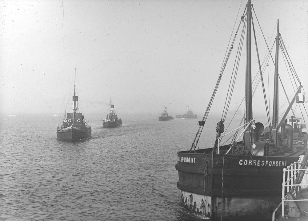 Вид на караван судов в море. На переднем плане справа у причала пароход «Correspondent». 23 августа - 1 сентября 1914 г.
