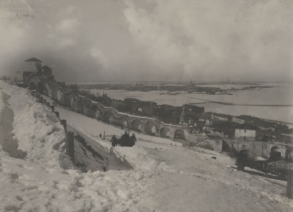 Общий вид на кремлевскую стену с Ивановской башни.Дата: к. XIX в. Место съемки: г. Н.Новгород Автор: М.П. Дмитриев