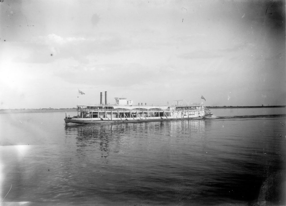 Заднеколесный пароход «Великая княгиня Мария». Общий вид. Автор: В.А. Зевеке Место события: г. Астрахань Дата: 1908 г.