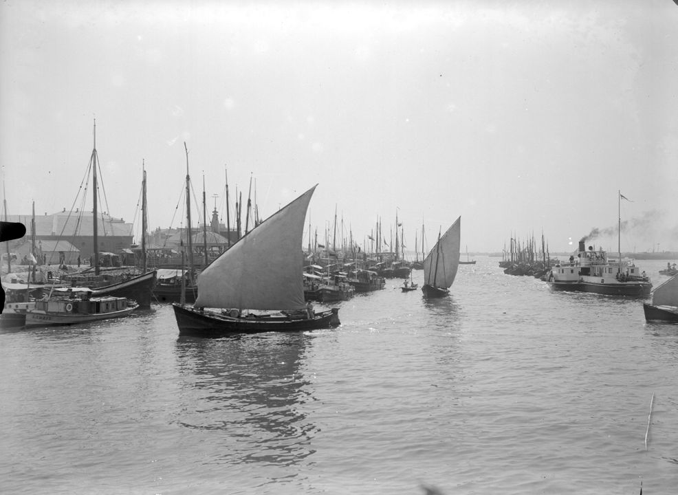 Яхты у пристани. Автор: В.А. Зевеке Место события: г. Астрахань Дата: 1908 г.