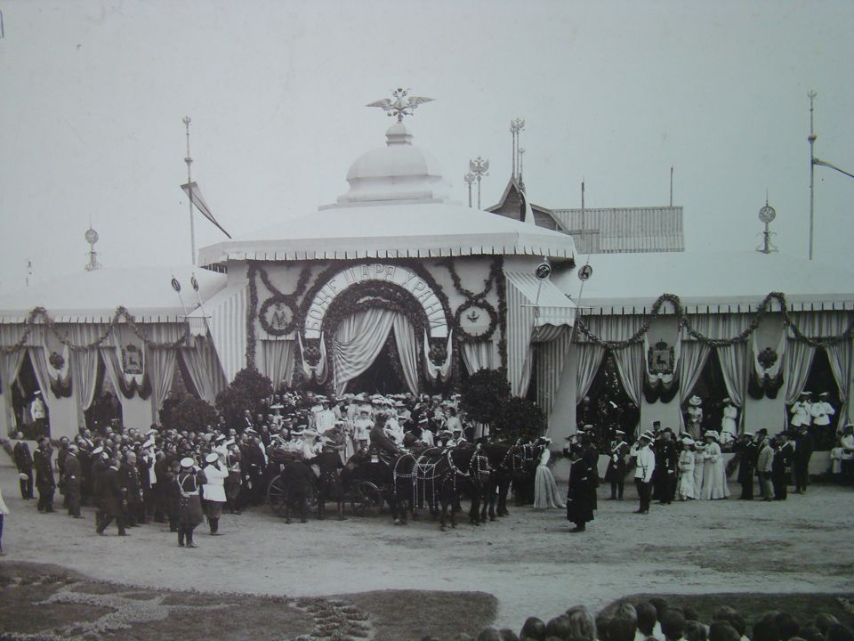 Визит Николая II в Саровский монастырь. Отъезд четы Романовых в Саровский монастырь. Дата: 1903 г. Место съемки: г. Н.Новгород Автор: М.П. Дмитриев