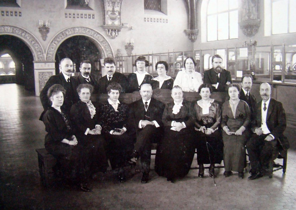 Благородный дамский комитет по пошивке белья для армии за работой. Автор: М.П. Дмитриев Место события: г. Н.Новгород Дата: 1910 г.