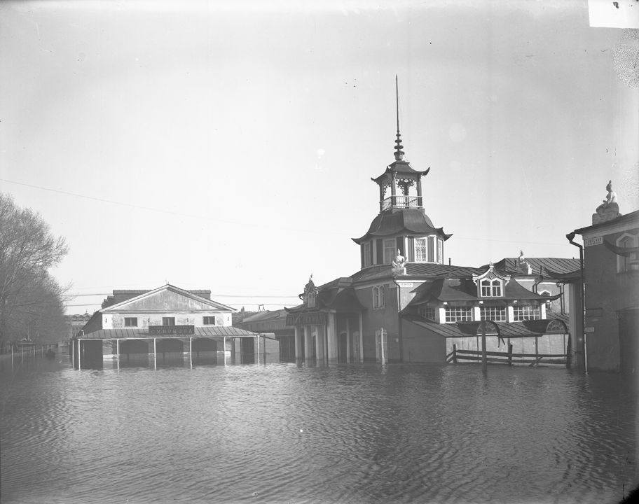 Нижегородская ярмарка во время половодья. Вид на Театральную площадь. Нижний Новгород.
