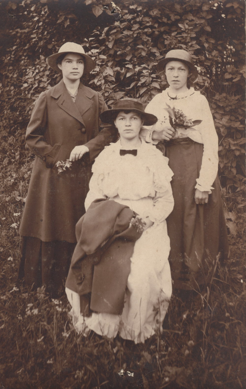 Фотограф неизвестен. Город Муром. Сад Спасо-Преображенского монастыря. Фотопортрет А.Н. Емельяновой с подругами. 6 июня 1917 г.