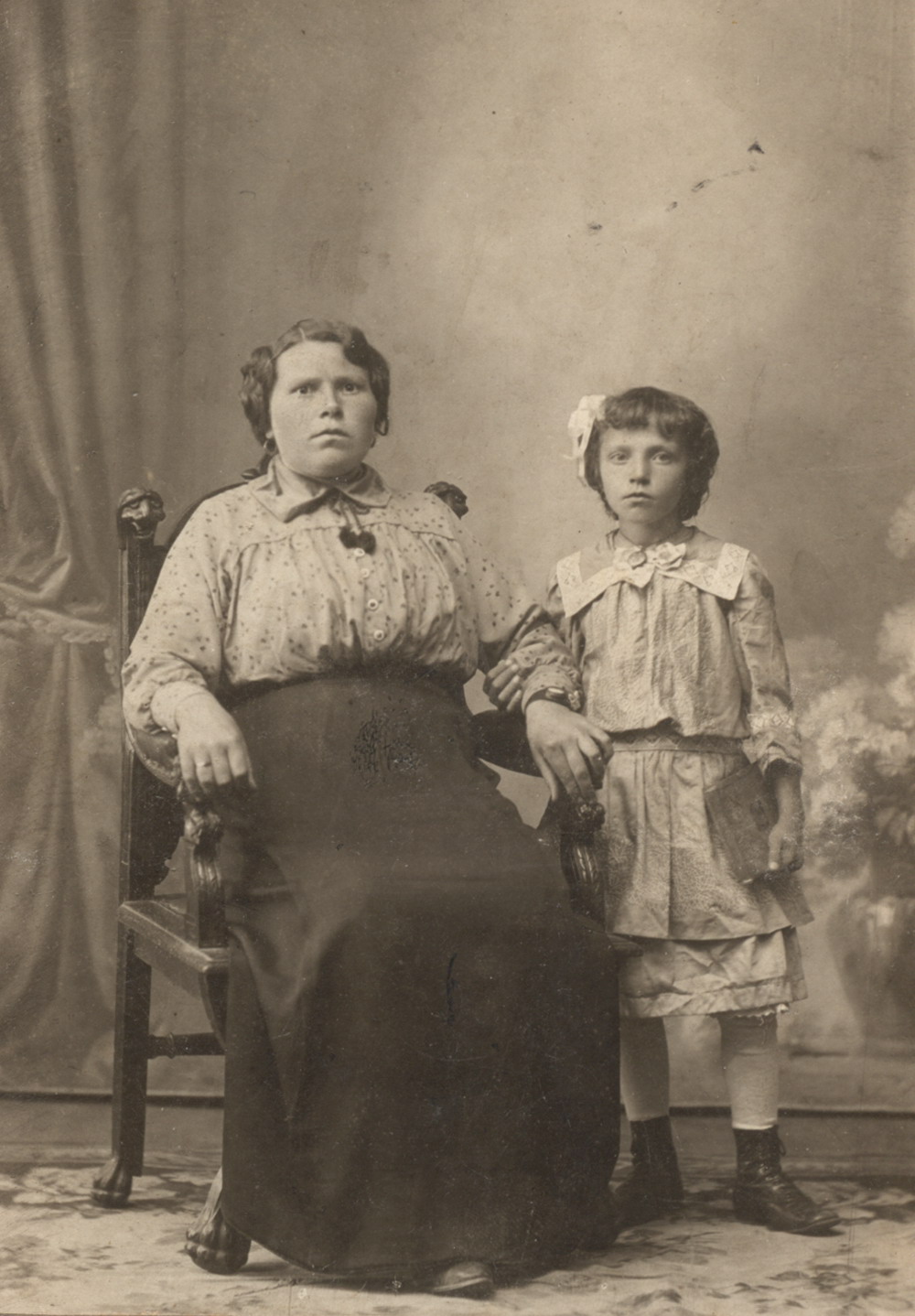 Кузаев Н.М., г. Нижний Новгород. Портрет жены кузнеца Боронина И.А. Агнеи Ивановны Борониной (1888-1977) со старшей дочерью Анной, середина 1910-х гг.
