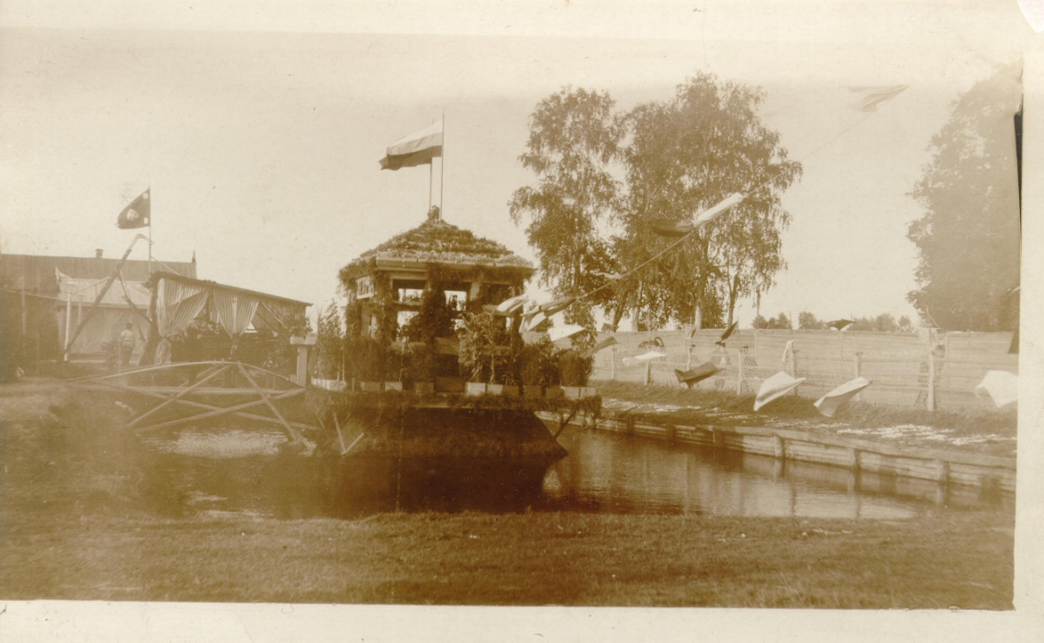 Пруд и беседка на территории воспитательно - исправительного приюта во время сельскохозяйственной выставки в г.Мологе в 1912 г.