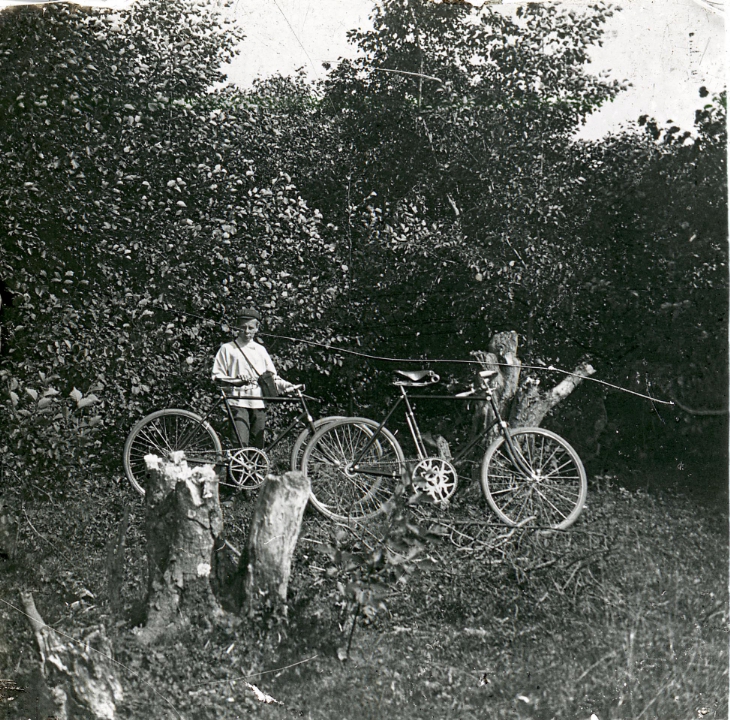 Молодой человек с велосипедом в д. Дмитриевка
