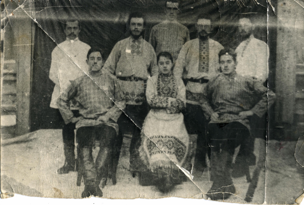 Наталия Павловна Дурдина с матерью и неизвестными женщинами у лестницы перед домом