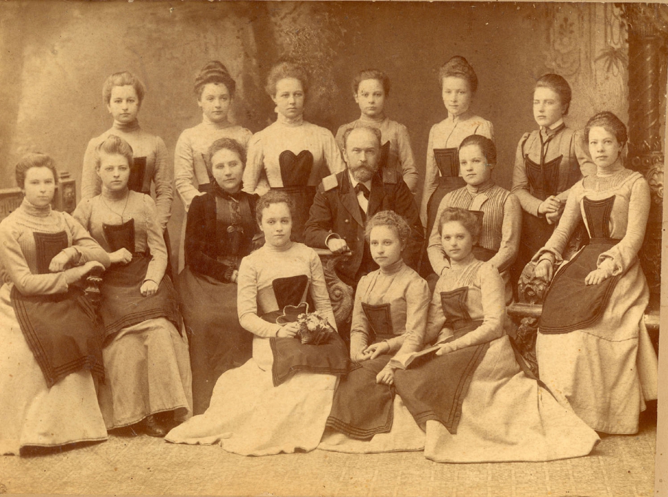 Наталия Павловна Дурдина с матерью и неизвестными женщинами у лестницы перед домом Наталия Павловна Дурдина с матерью и неизвестными женщинами у лестницы перед домом