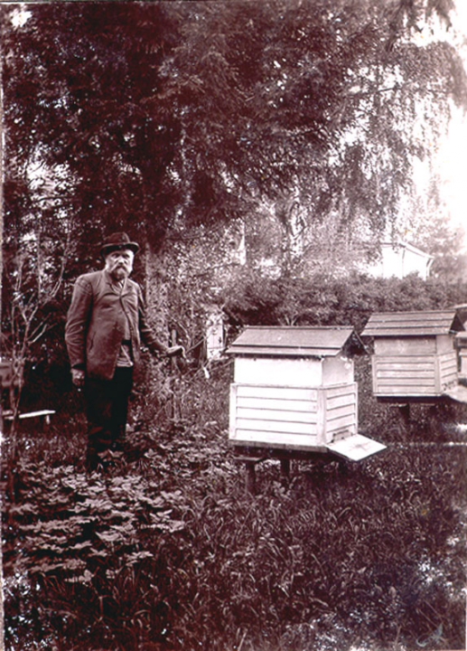 С.С.Масленников около ульев