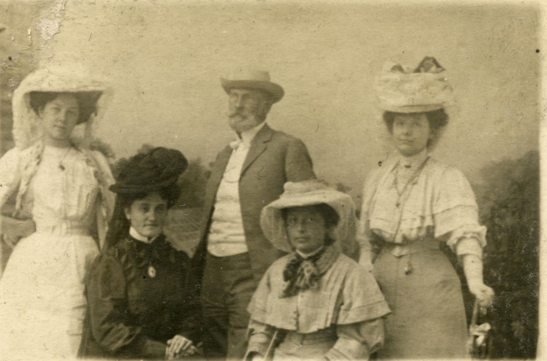 Наталия Павловна Дурдина с матерью и неизвестными женщинами у лестницы перед домом