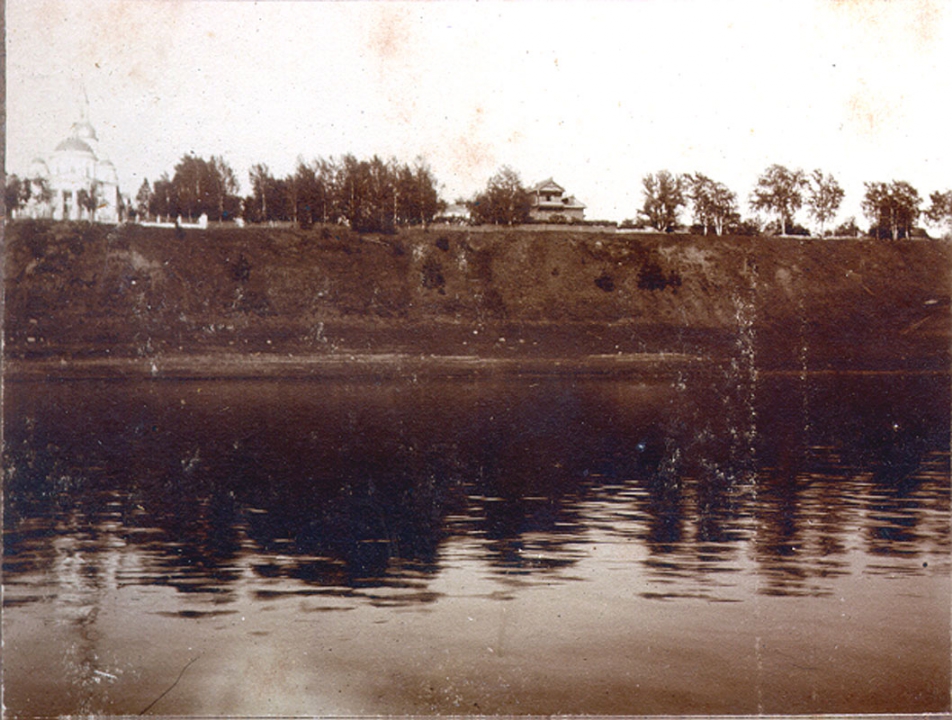 Вид на Глебовскую церковь и школу с Волги