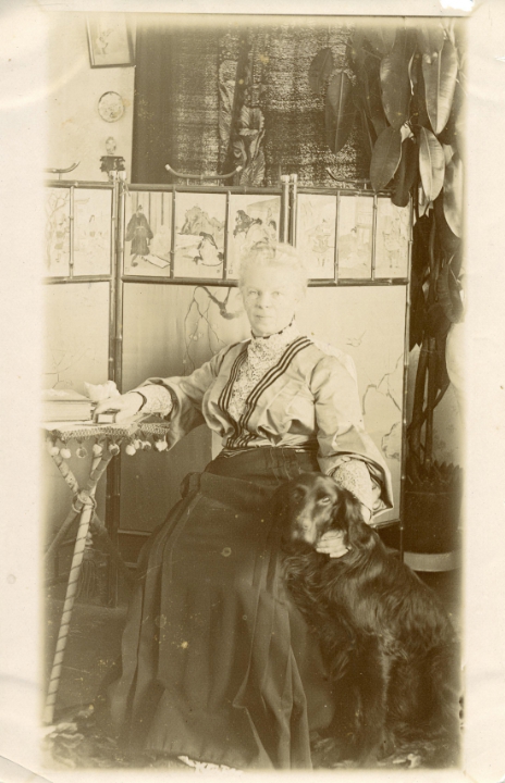 Наталия Павловна Дурдина с матерью и неизвестными женщинами у лестницы перед домом