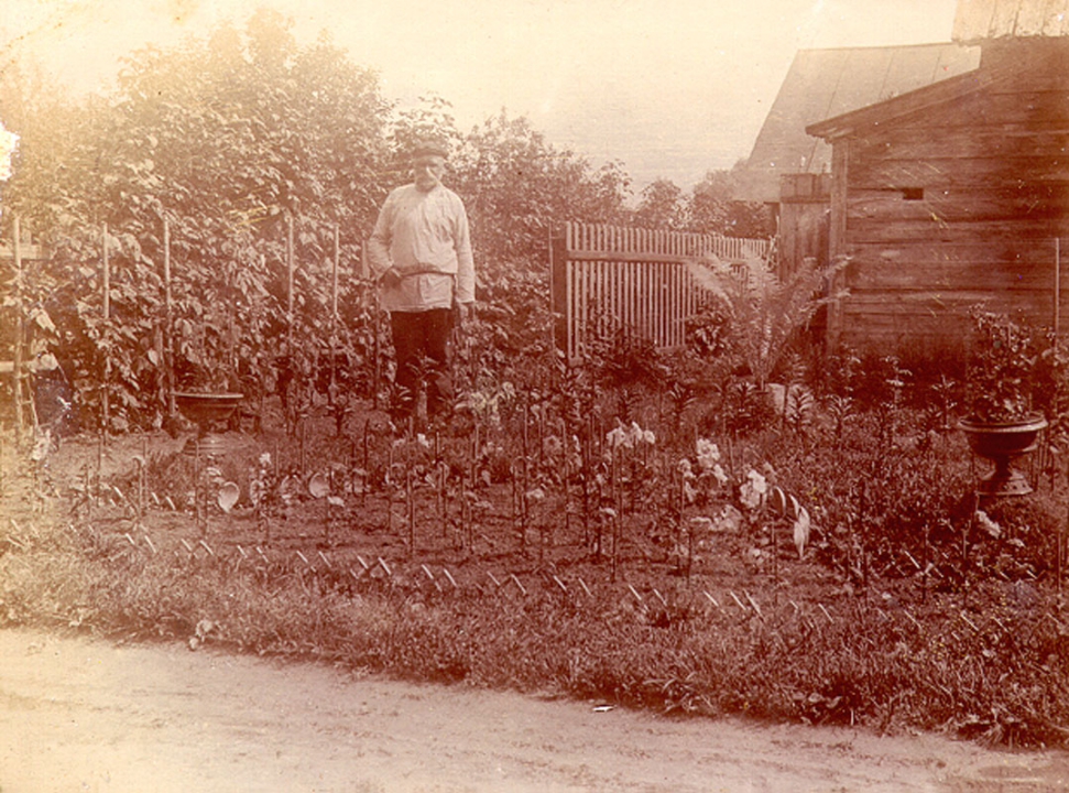 Наталия Павловна Дурдина с матерью и неизвестными женщинами у лестницы перед домом