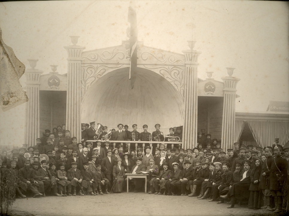 Группа лиц на открытии Мологской Уездной сельскохозяйственной выставки 1912 года.