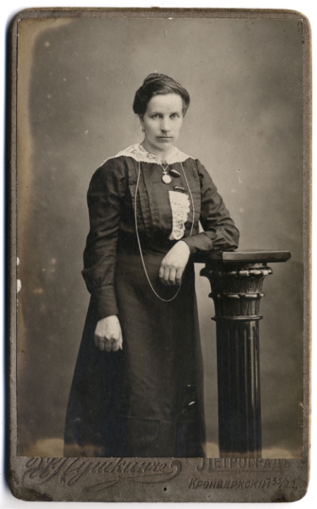 Наталия Павловна Дурдина с матерью и неизвестными женщинами у лестницы перед домом