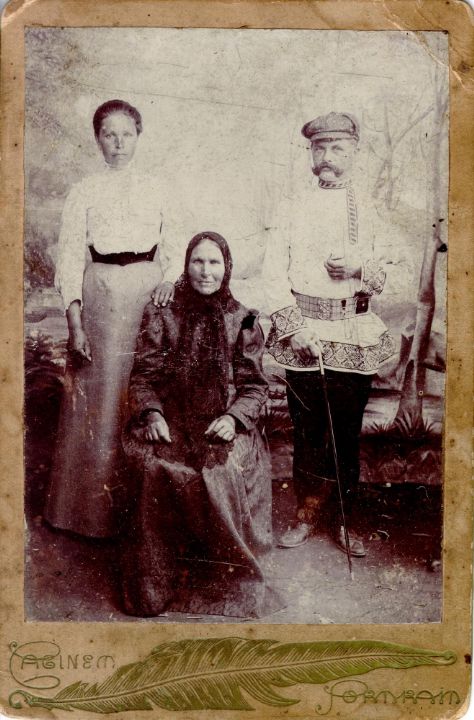 Наталия Павловна Дурдина с матерью и неизвестными женщинами у лестницы перед домом