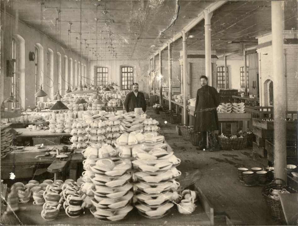 Интерьер живописного цеха фарфоровой фабрики Кузнецова в поселке Песочное