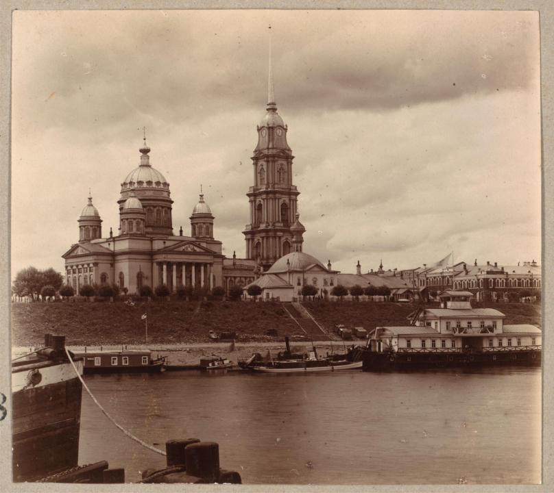 Вид с Волги на Спасо-Преображенский и Никольский соборы г. Рыбинска