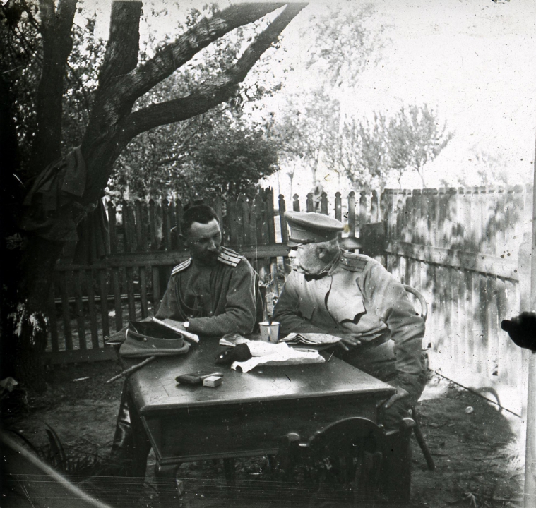 Наталия Павловна Дурдина с матерью и неизвестными женщинами у лестницы перед домом