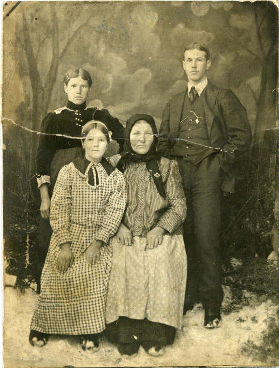 Наталия Павловна Дурдина с матерью и неизвестными женщинами у лестницы перед домом