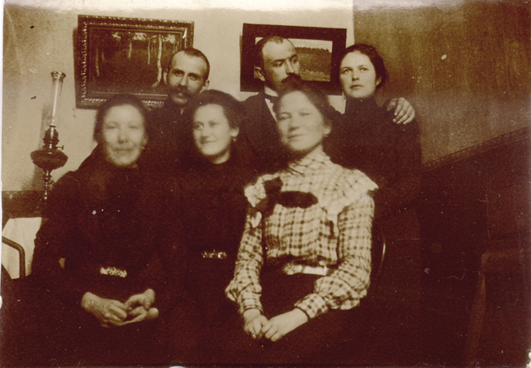 Наталия Павловна Дурдина с матерью и неизвестными женщинами у лестницы перед домом