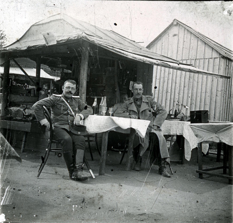 Наталия Павловна Дурдина с матерью и неизвестными женщинами у лестницы перед домом