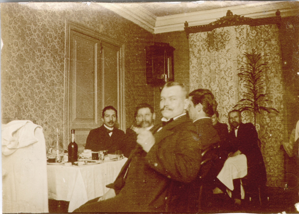 Группа мужчин у стола в комнате