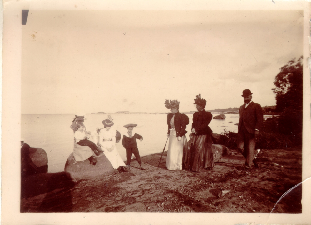 Наталия Павловна Дурдина с матерью и неизвестными женщинами у лестницы перед домом
