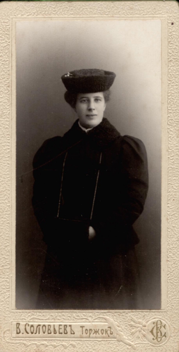 Наталия Павловна Дурдина с матерью и неизвестными женщинами у лестницы перед домом
