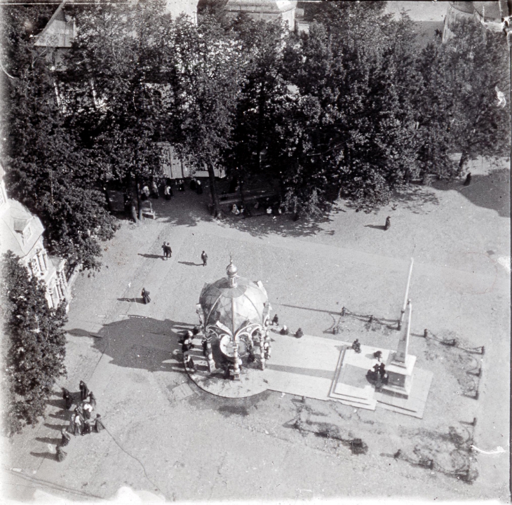 Сень над крестом и Надкладезную часовню в Троице-Сергиевой лавре. Вид с колокольни