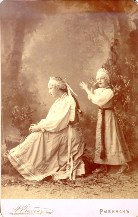 Ольга Николаевна Глебова с неизвестной девочкой в русских костюмах.