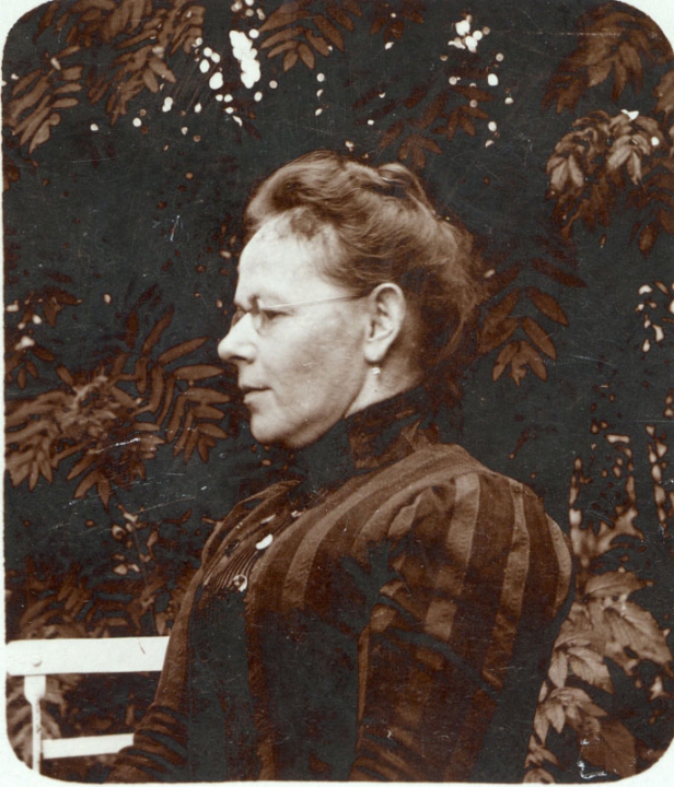 Наталия Павловна Дурдина с матерью и неизвестными женщинами у лестницы перед домом