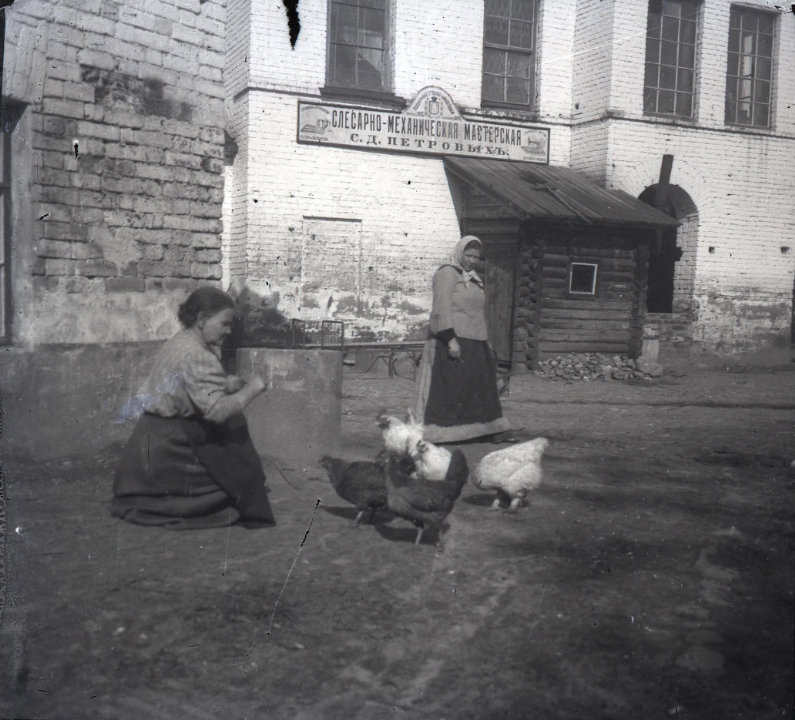 Наталия Павловна Дурдина с матерью и неизвестными женщинами у лестницы перед домом