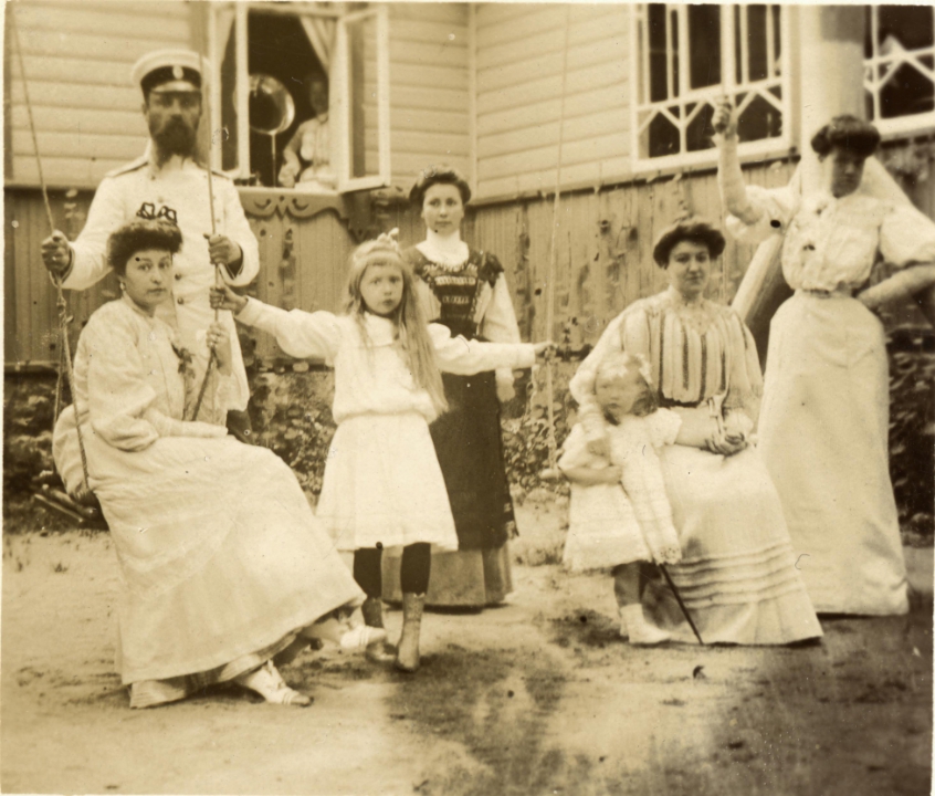 Наталия Павловна Дурдина с матерью и неизвестными женщинами у лестницы перед домом