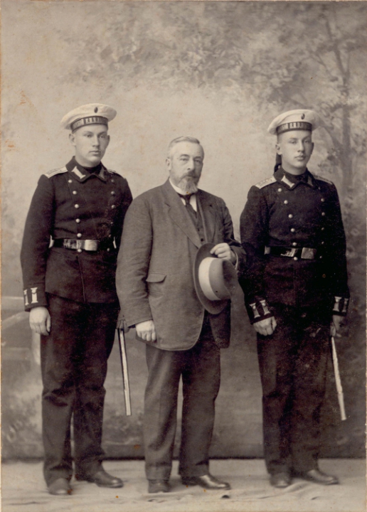 Николай Александрович Бруни с сыновьями в форме гардемаринов