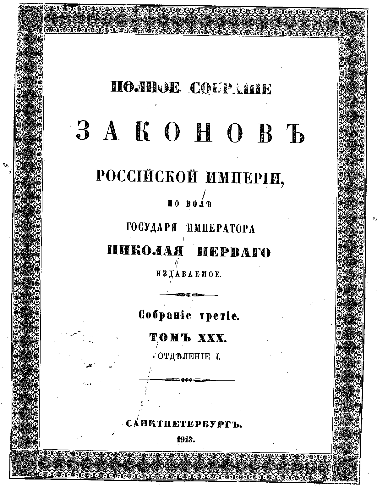 Полное собрание законов Российской Империи. Собрание Третье. Том XXX. Отделение 1