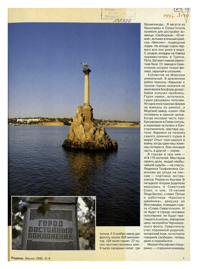«Родина» — единственный в России популярный исторический журнал. Он продолжает традиции одноименного дореволюционного издания, основанного еще в 1879 году. В наше время выход журнала возобновлен с января 1989 года.